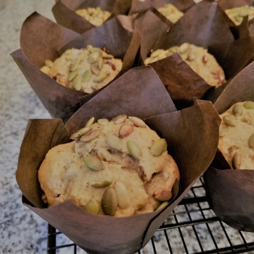 *I've made these muffins twice now and I prefer the pepitas inside the muffins, sunflower seeds on top. They stick to the top better. Also, don't buy pre-chopped dates. They are drier than the regular whole dates.