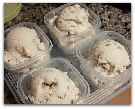 I like to portion mine out into single-serve containers. (When you have dairy-free ice cream, you have to let it sit out at least 20 minutes before scooping it. I don't always like letting the whole container sit out repeatedly.) I bought these OXO baby food containers and they are perfect for my ice cream! That way, I can let them sit out for 20 minutes each and not worry about the ice cream getting weird :-)