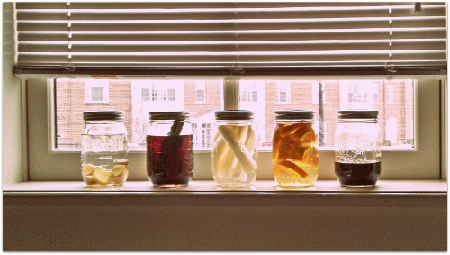 I grabbed a handful of mason jars and began infusing. Here are some that I started with: